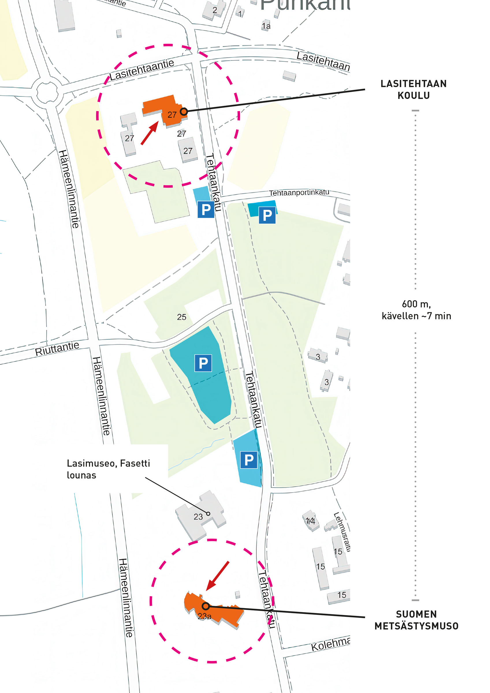 Siirtyminen Lasitehtaan koululle (kävelymatka 600 m).